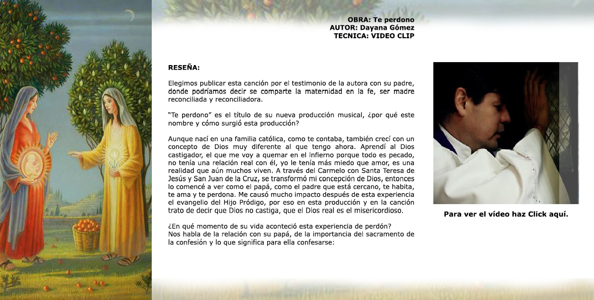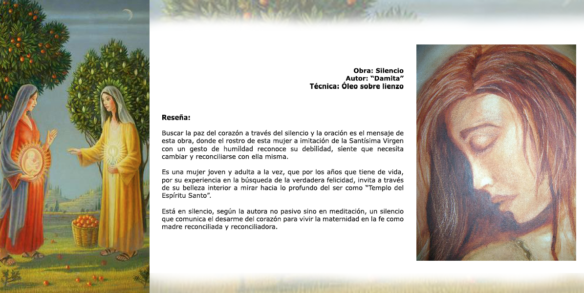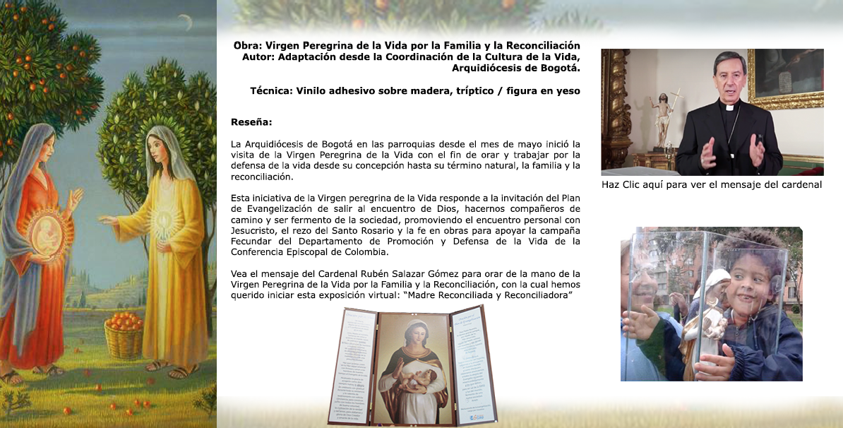 En la siguiente exposición podrán contemplar obras que reflejan distintas miradas sobre la Madre Reconciliada y Reconciliadora, tema central de esta convocatoria para reflexionar en torno al perdón, la vida y la Paz que nos da el Amor de Dios.