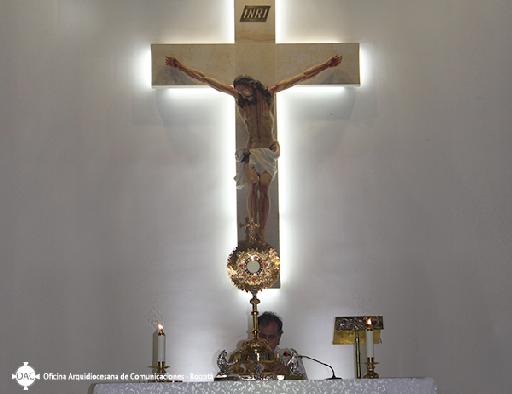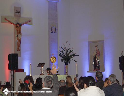 El programa radial de la Arquidiócesis de Bogotá y el Plan de Evangelización, “Iglesia discípula y misionera” de la Emisora Minuto de Dios, que se transmitió el pasado martes 30 de septiembre, tuvo algunos directos desde la Parroquia Santa María Soledad Torres Acosta, en el barrio Veraguas donde se realizó la segunda noche de adoración ya que la misión consiste en cinco noches de adoración previas a la magna adoración; la cual fue presidida después de la Santa Eucaristía por el padre Marino Marín Marmolejo párroco de esta bella comunidad, quien oró por la misión de Cielo Abierto y por los asistentes.