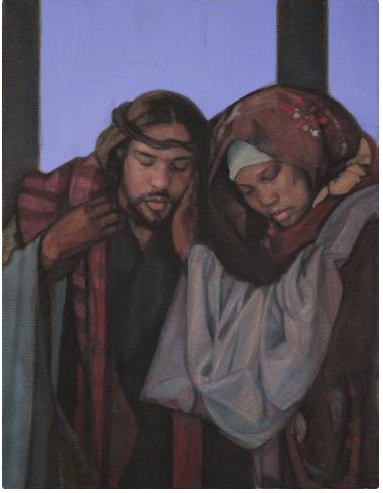 12 – “María y Jesús”: Susan Ogilvie ve el hoy como “un tiempo maravilloso para ser católico y un artista de la mujer, creando arte sagrado”. Ogilvie dice que la pintura refleja su “tierna crianza, y una sensibilidad femenina a los colores, inspirada en el llamado del Beato Juan Pablo II a los artistas en el nuevo milenio para evangelizar a través del nuevo arte sagrado”.