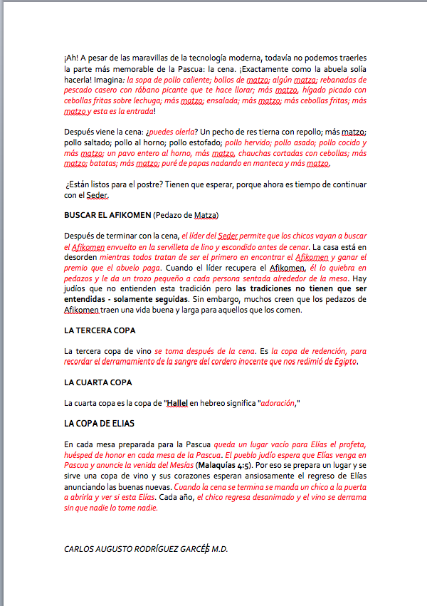 Las etapas de la cena judía de la Pascua tienen un orden y un significado litúrgico en las cuatro copas de vino