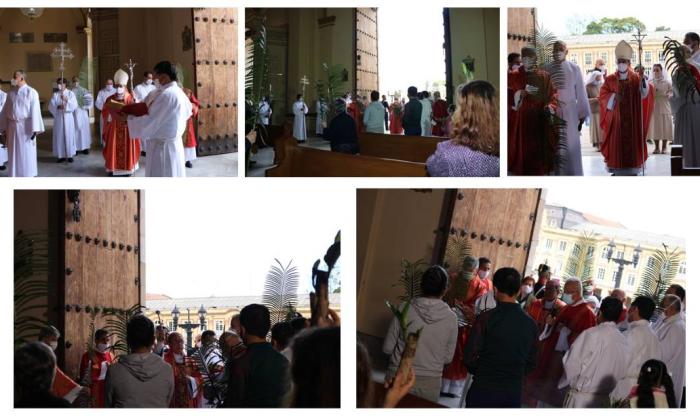 En la puerta principal de la catedral Primada de Bogotá, el Señor Arzobispo bendijo los ramos que tradicionalmente acompañan esta celebración, en la que se conmemora la entrada triunfal de Jesús a Jerusalén, como como obertura al Triduo Pascual.