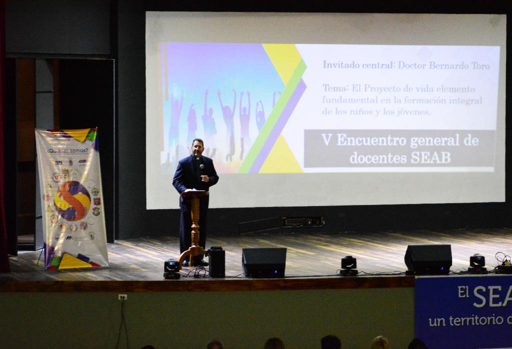 El quinto encuentro de docentes del SEAB (Sistema Educativo de la Arquidiócesis de Bogotá), inició con la oración realizada por el capellán general del SEAB, padre Rubén Darío Hernández. Acto seguido, monseñor Luis Manuel Alí, obispo auxiliar de Bogotá, dirigió unas palabras a todos los asistentes: “Ustedes como sistema de educación de la arquidiócesis de Bogotá estos cinco últimos años han reflexionado sobre el tema de proyecto de vida. Ha sido un punto transversal en cada institución del sistema, lo han tomado como herramienta pedagógica para formar niños, niñas y jóvenes ”.