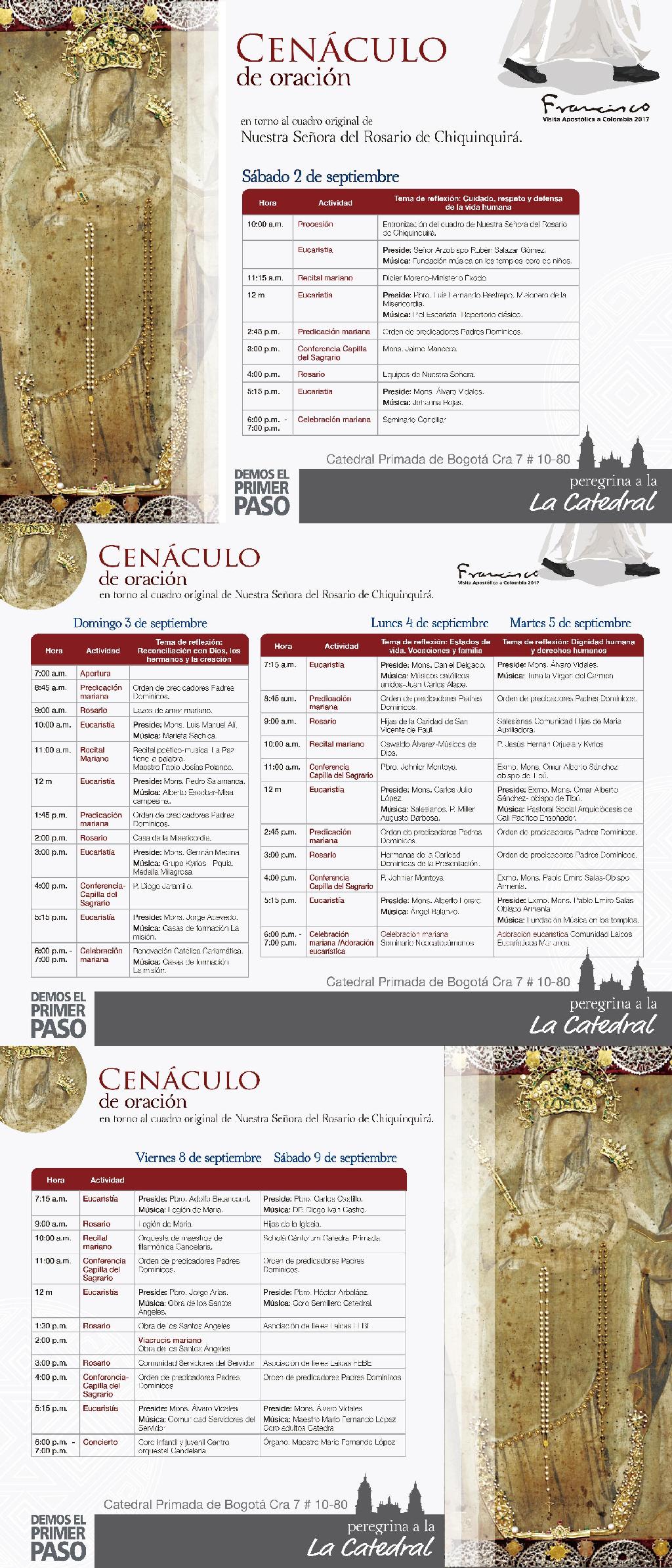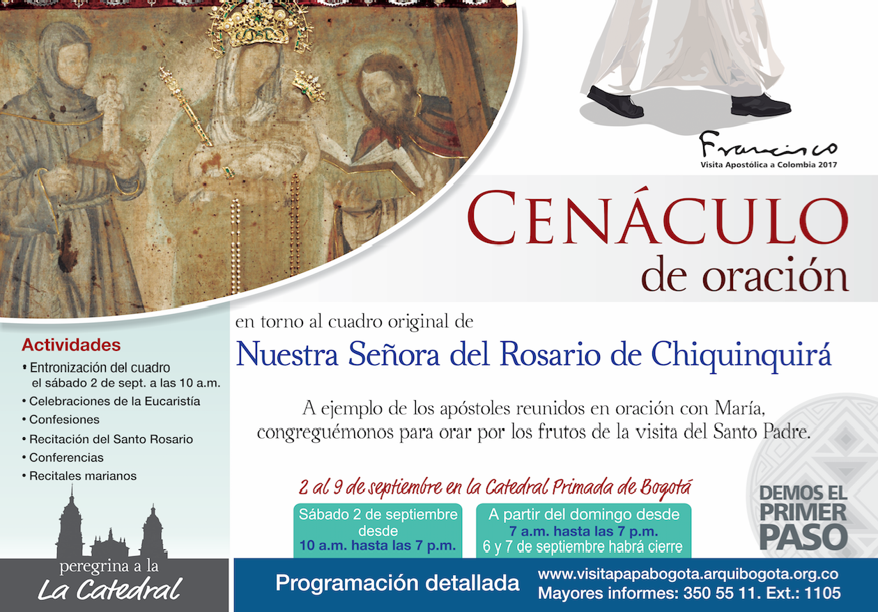 A continuación programación completa sobre cenáculo de oración entorno al cuadro original de Nuestra Señora del Rosario de Chinquinquirá: