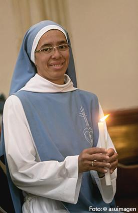 Adela Jiménez pertenece a la Comunidad Trinitaria de las Hijas de Dios, su sede principal está en Villavicencio, actualmente están ubicadas en Galerías – Bogotá. El Señor Jesús ha sido la luz de su vida desde pequeña, es la luz para su comunidad al trabajar desde la infancia hasta la tercera edad, escuchemos: