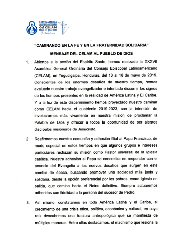 Finalizada la XXXVII Asamblea General Ordinaria del CELAM y como fruto de reflexiones profundas sobre sus desafíos y tareas pastorales la nueva presidencia del cuerpo…